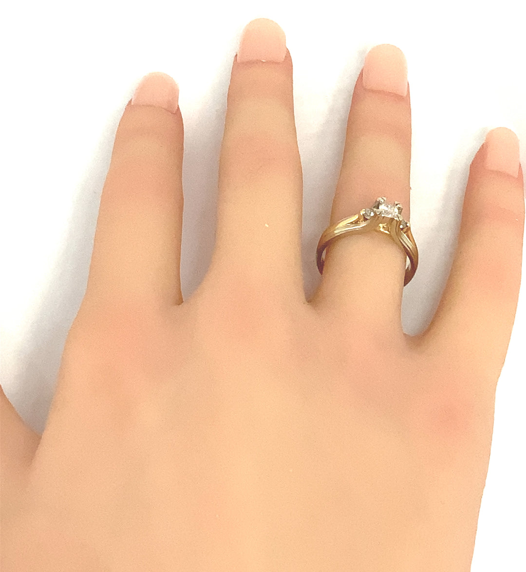 Lady's Two Tone 14K 3 Stone Fashion Ring Size 6.25 With One = 0.18Ct Round Brilliant Cut Diamond And 2 = 0.08Tw Round Brilliant Cut Diamonds Weight: 3.8