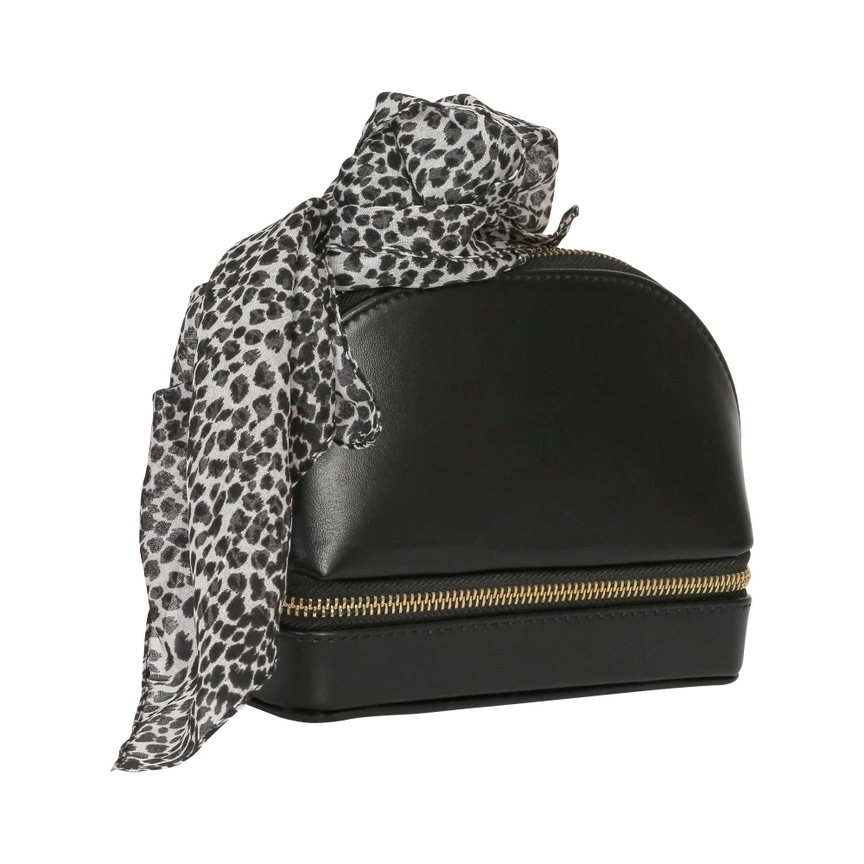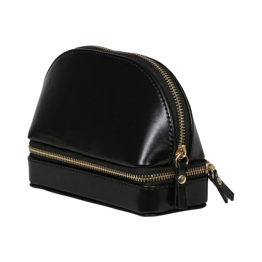 Mele and Co Duo Vegan Leather Travel Jewelry Case in Black, 2 zippered compartments in vegan leather