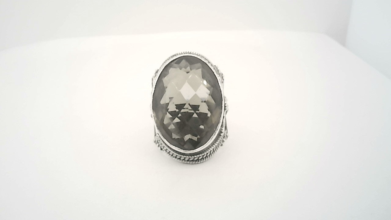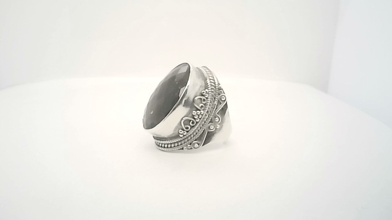 Sterling Silver Ring Size 9 one = Oval Shape Smokey Quartz