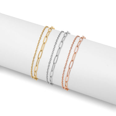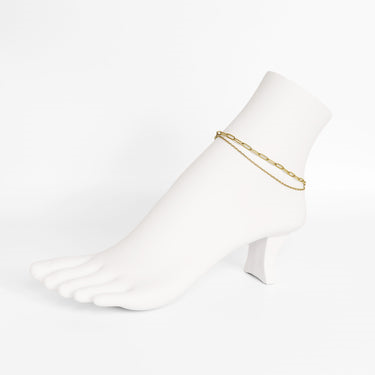 Classic, timeless, and perfect for every day wear, this two row chain anklet is a must have anklet to add to your collection! This unique women's anklet features two chain styles, the classic loop chain and paperclip chain that are soldered together on asingle lobster clasp to give the look of an effortless drape.